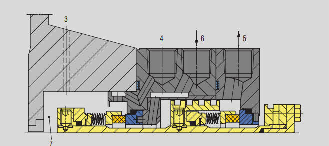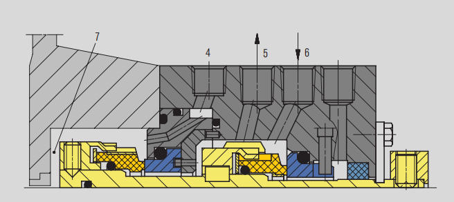 ఫ్లషింగ్ ద్రవం యొక్క ప్రవాహాన్ని మెకానికల్ సీల్కు పరిమితం చేయడానికి ప్రవాహ నియంత్రణ కక్ష్యలను ఉపయోగిస్తుంది.