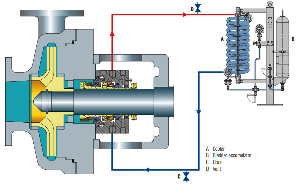 మెకానికల్ సీల్ చాంబర్ నుండి వేడిని తొలగించడానికి ఫ్లషింగ్ ద్రవం యొక్క ప్రవాహం రేటు తప్పనిసరిగా సరిపోతుంది.